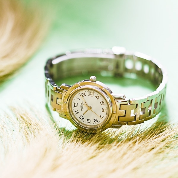 「舷窓(げんそう)をイメージした、旅する人のための時計」 19世紀の高速帆船「クリッパー号」の窓を思わせる、ビス打ちされたベゼルが特徴。エルメスのウォッチメイキングを象徴するロングセラーとなりました。Hロゴを連ねたブレスレットなど、メゾンの歴史が細部に息づいています。現在は生産終了していますが、その普遍的な美しさはリユース市場で今なお高い支持を集めています。