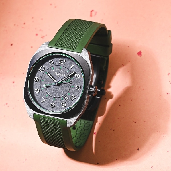 「アクティブな毎日に、本物のこだわりを」 2021年に登場した、現代的でスポーティなメンズウォッチの新定番です。角を丸くしたスクエアケースには、力強さの中にもエルメスらしい繊細な曲線美が宿ります。セラミックやチタンといった軽量で堅牢な素材を採用しており、ビジネスからプライベートまで、現代のライフスタイルに寄り添うハイエンドな一本です。