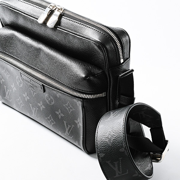 伝統的なモノグラム・キャンバスに、艶やかなブラックレザーのトリミングを組み合わせたメンズライン。マカサーエボニー(黒檀)のような力強さと洗練を表現しています。クラシックなブラウンにシャープな「黒」が加わったことで、ビジネスシーンでも際立つ都会的な表情へと進化を遂げました。