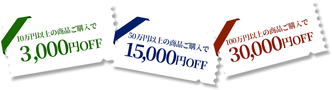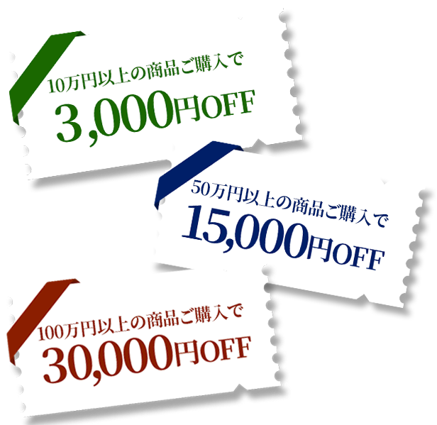 ・商品1点のご購入金額が100万円以上の場合30,000円OFF